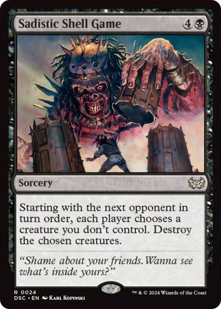 Starting with the next opponent in turn order, each player chooses a creature you don't control. Destroy the chosen creatures.