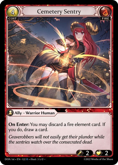 On Enter: You may discard a fire element card. If you do, draw a card.