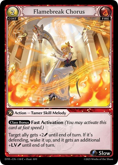 Target ally gets +2 power until end of turn. If it's defending, wake it up, and it gets an additional +LV power until end of turn.