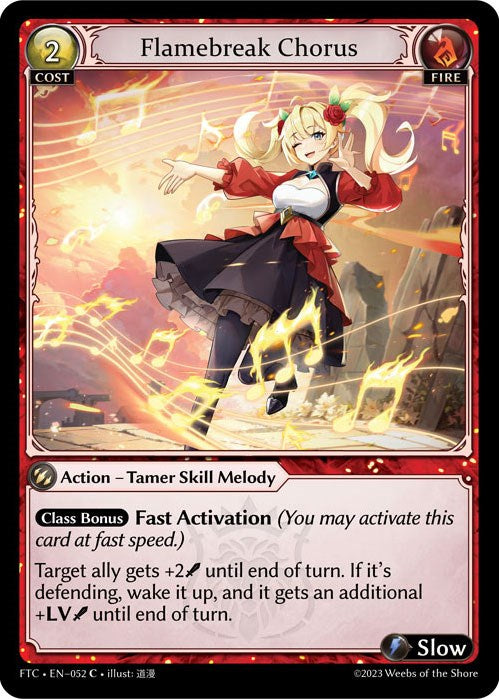 Target ally gets +2 power until end of turn. If it's defending, wake it up, and it gets an additional +LV power until end of turn.
