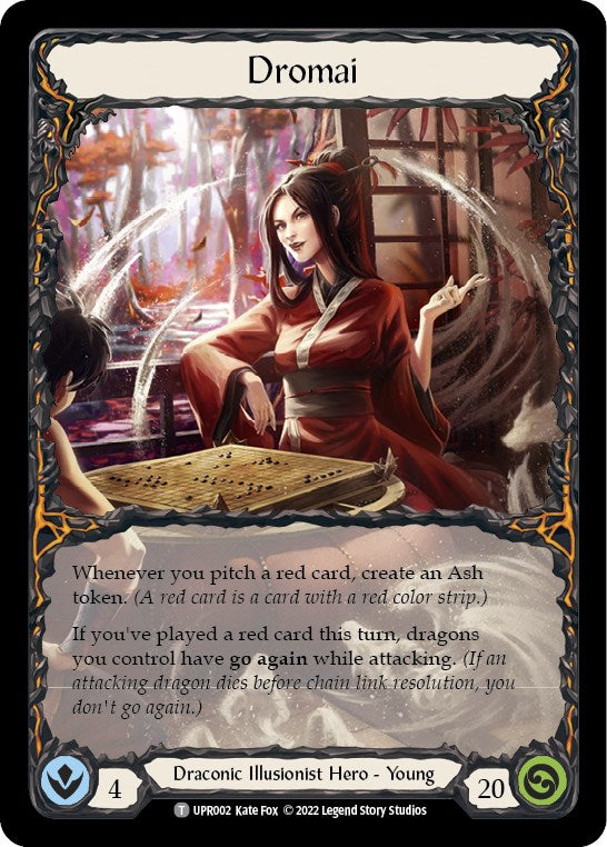 If you've played a red card this turn, dragons you control have go again while attacking. (If an attacking dragon dies before chain link resolution, you don't go again.)